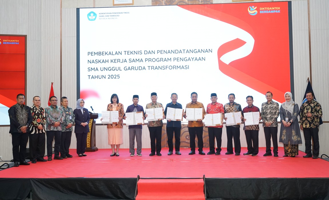 Penandatanganan Nota Kesepakatan dilakukan antara Kementerian Diktisaintek, Dirjen Pendis, dan 11 Pemerintah Daerah dari 11 Provinsi SMA Garuda Transformasi.